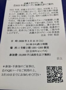 OBOGの方は、葉書のQRコードから出欠の回答を3/9迄にお願いします。